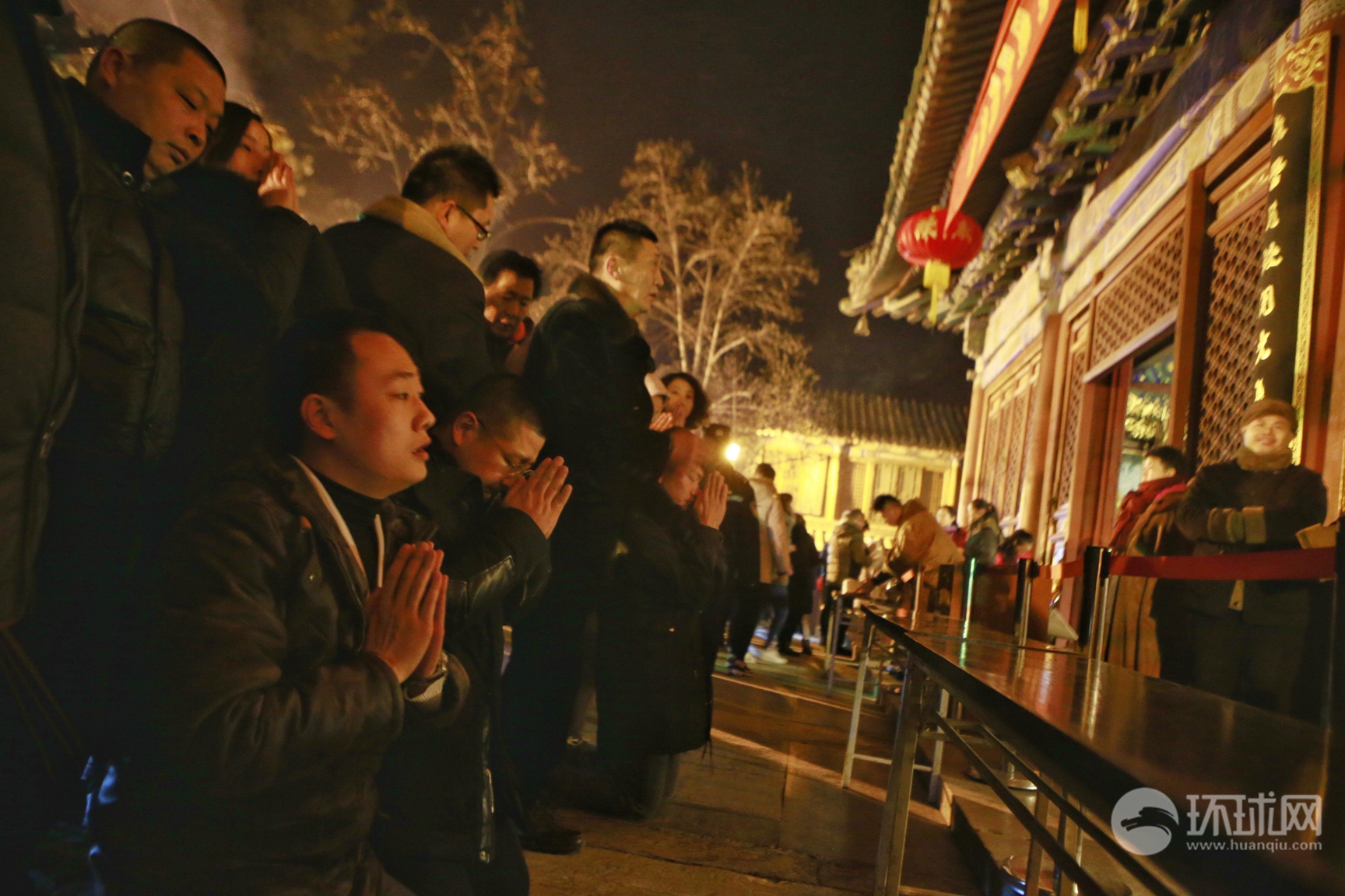 2017年1月28日除夕夜,门头沟区潭柘寺,人们在此烧香祈福,期盼新的一年会有好运气。为了争得新年头香,零点时分成了进香的高峰,大年初一凌晨到清晨的进香人数约15000人左右。(摄影:《环球时报》英文版 李昊)