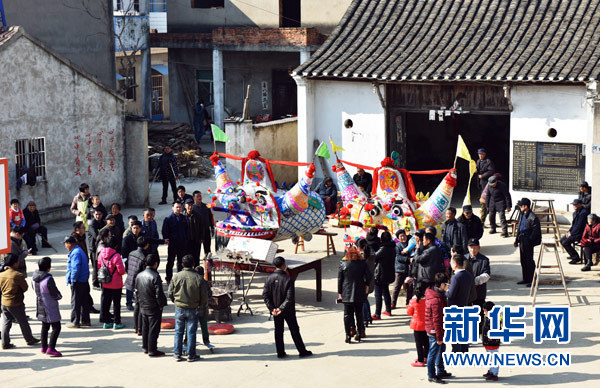 新华网南京1月26日电(张本甫 王璐 陶燕燕 朱露鑫)糊黄纸、剪边角、装蜡烛……昨天是大年二十九,当天下午,新春走基层成员在南京市溧水区洪蓝镇何林坊村看到,村民们正在为大年初四晚上开始的舞龙灯做准备。他们要连续3个晚上舞龙灯。据了解,溧水区民俗文化保存良好,年味十足,除了舞龙灯,现存的民俗文化还有舞狮、划龙船、跳铛铛、打社火、抛钹、跳花篮等。