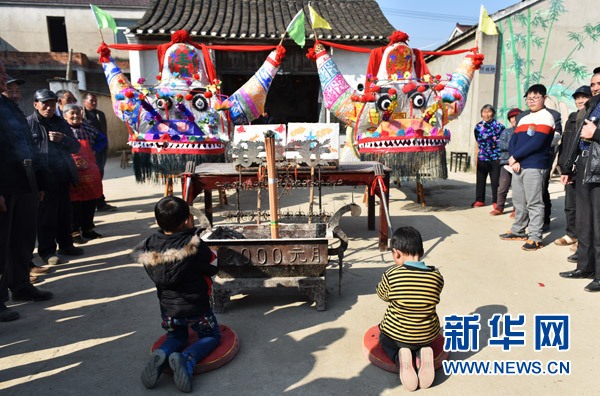 “请龙仪式”在村中心广场上进行。(应康伟 摄)