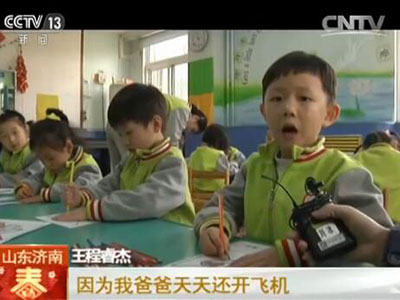 王程睿杰:可是我不愿意,因为爸爸天天在开飞机,妈妈一个人在家照顾不了两个孩子。
