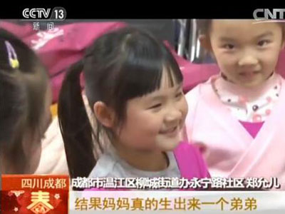 记者:妈妈答应什么时候给你生个小妹妹?
