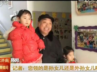 记者:您领的是孙女儿还是外孙女儿啊?