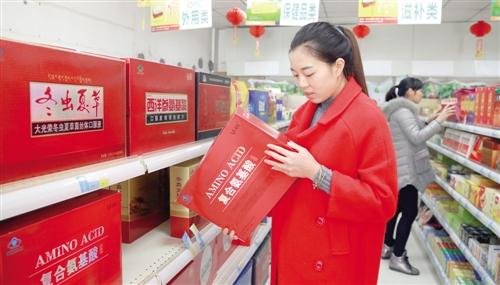 2月3日,顾客在江西峡江县一家药店挑选保健品。为规范保健品市场,该县对保健食品经营企业实行行政许可制度,要求经营企业在醒目位置悬挂经营单位承诺公示牌、消费安全警示牌、产品信息明示牌,并采取定期检查和突击检查的方式加强对经营企业的监督,确保保健品市场安全。 陈福平摄