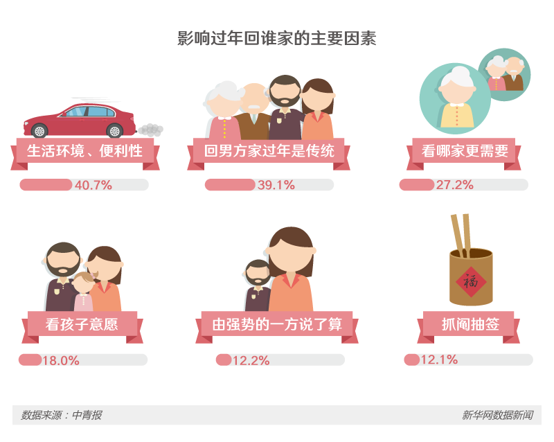 虽然在传统观念中“女方回婆家过年”是“天经地义”,但随着独生子女夫妻群体的壮大以及社会观念的改变,越来越多的女性不愿再墨守成规。而要想在为期一周左右的春节做到婆家娘家兼顾,对于绝大多数夫妻来说,几乎是不可能的。可以说“回谁家过年”的确已上升为一个普遍性的问题。
