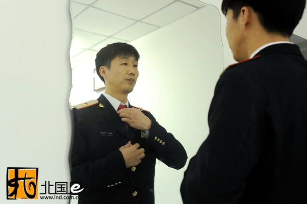 每天早晨,牛云峰都会在班前整理好自己的着装,以最好的形象展现在旅客面前。