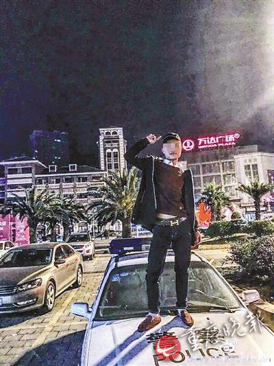 原标题:爬上警车摆造型 无业小伙遭拘留
