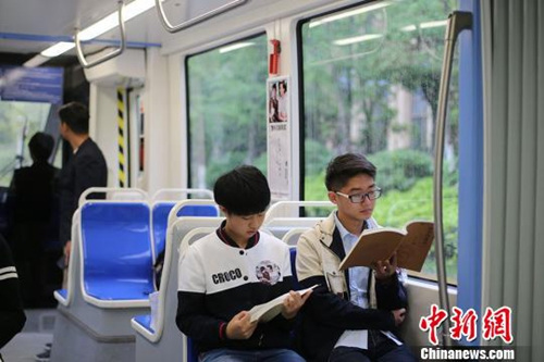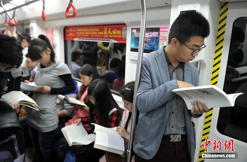 资料图:江西大学生阅读“占领”地铁,呼吁民众多读书。刘占昆 摄