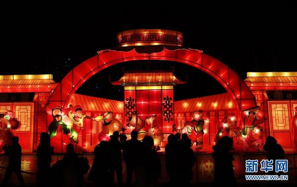 2月9日,游客在传统元宵灯会上观赏花灯。元宵佳节临近,河北省霸州市第三十二届胜芳传统元宵灯会吸引众多游客赏灯游玩。 新华社记者王晓摄