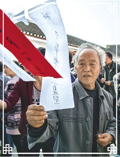 图⑤:贵州黔西县群众参加猜灯谜活动。