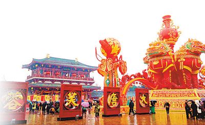 今年的大唐芙蓉园元宵灯会活动以生肖“鸡(凤)”为主题,展示了“凤舞九天”“大吉(鸡)大利”等彩灯形象。园区内主环道沿途布置了“九曲灯阵”“张氏风筝”“陕西花馍”等灯组,游客可以参与互动体验,展示了陕派非物质文化元素。