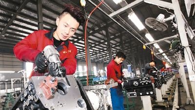 2月6日,安徽当涂经济开发区内的徽柴集团天沃公司工人在组装出口东南亚的新型柴油机。