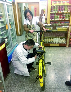 日前,微博上有热门话题,“共享单车是城市的照妖镜”,但在用户张女士看来,共享单车也是城市的映善镜,“我见过几个送餐的小伙子,大概是下午空闲时间,一边站路边聊天,一边就把身边的七八辆小黄车摆放整齐了,当时我就挺感动。这个小举动也反映了人们向善、维护良好社会秩序的心”。上周,还有市民去药店买药时拍下了感动不少网友的一幕,“卖药师傅说门口的车座椅坏了,就推进来修了一下,然后又放回原位”。照片里,一位身着白大褂的药店员工蹲在地上用工具拧着一辆小黄车的车座(如图)。