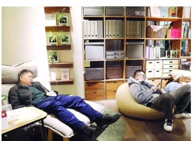 在躺椅不远处,MUJI放置了三张懒人沙发,原本两名女生坐在沙发上聊天,十几分钟后两人起身离开,顾客金阿姨快步向前,“逛累了,就坐一下。”金阿姨告诉记者,每次来MUJI只要累了都会来坐坐,“应该是可以坐的,因为大家都坐。”而和记者对话结束没多久,太过疲惫的金阿姨已经进入了梦乡。