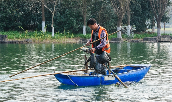 浙江在线宁波2月21日讯(浙江在线记者 王凯艺 通讯员 朱娇娇 陈秦 邵晓豪)一支由28只鸬鹚、3艘船只组成的生态捕鱼小分队一早就开始了一天的工作,在专业人员的吆喝下,只见一只只鸬鹚纷纷下水捕鱼,不一会儿鲤鱼、草鱼等各种鱼被捕捞上来,养护公司许工告诉记者,这些鸬鹚很是给力,还捕获了一条10来斤的大鲤鱼。