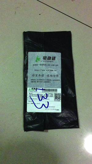 张先生称,最近一次收到来历不明的快递是在2月19日,“快递现在还放在家里,我也没打开看。摸着里面软软的,挺恶心的,也不敢打开看。”记者从张先生提供的照片中看到,一个黑色塑料袋,上面贴有快递单,显示是宅急送快递公司派送(如图)。