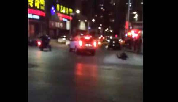 一名凯迪拉克女司机驾车撞人后逃窜。