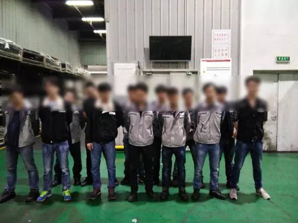 上面这张是报料人发给记者的照片,据悉,他们都是广州富美斯电子厂的员工。报料人称,从昨天(2月22日)起,他们就开始被叫到厂区车间内排成几排,集体“罚站”。之所以会有这么荒唐的行为发生,事情还要从工厂的加班制度说起。