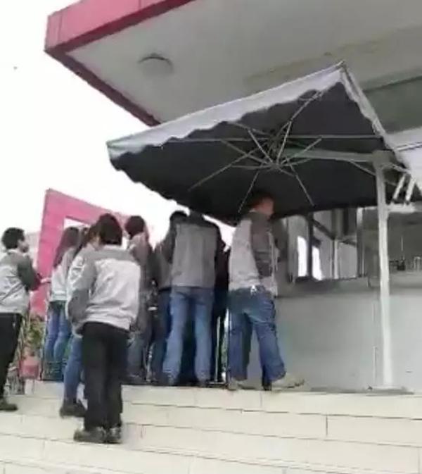 一直到周一,工人们准备正常返厂区工作时,却被保安拦在门外,最终经过一番理论,大家好不容易进入厂区,却又被告知不能进入生产车间,只能待在工厂的另外一处房间内,可以抽烟喝水,不被安排任何工作。