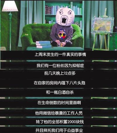 这位深受年轻人喜爱的主持人,在前日最新一期《暴走大事件》的结尾,向网友讲述了一个故事:一名17岁的暴走大事件粉丝在转出了一笔爱心捐款后,企图寻短见。随后,民警根据暴走大事件工作人员提供的线索,成功挽救了男孩的生命。