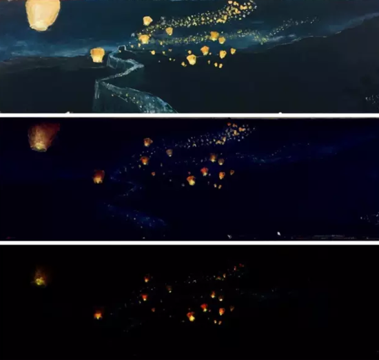 拉上窗帘,关上灯,画中的孔明灯里似乎真的燃起了火光~~~