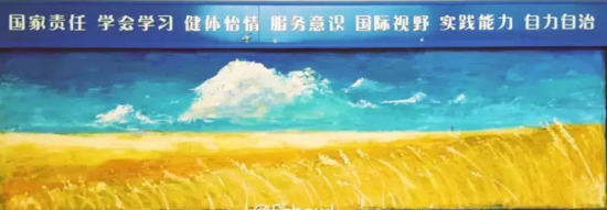 在年段黑板报上,听着李健的歌《风吹麦浪》,她画出金色麦田……