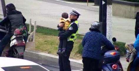 这几天,一位交警抱着孩子在车流如织的马路上指挥交通的照片在网上热传。照片中,只见一位年轻的交警左手抱着个小孩儿,还不时举起右手,示意车辆和行人快速通过路口,这到底是怎么一回事儿?难道自己家的娃没人带了吗?