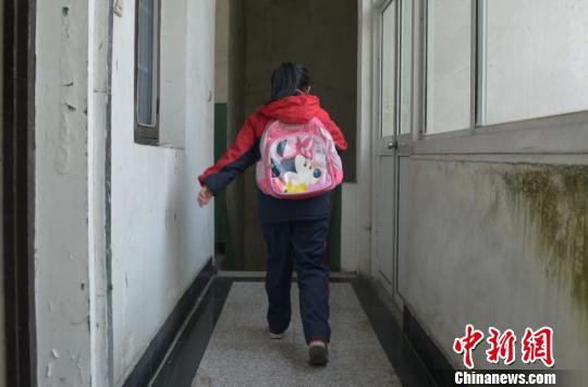 受助女童背着周霞送的书包快乐奔跑。 王刚 摄