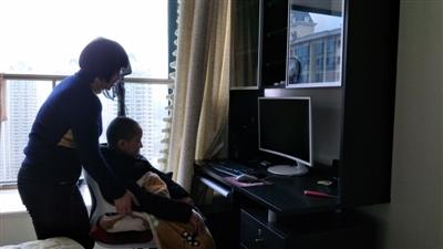 蔡雪群为患上罕见病DMD的儿子浩浩打开电脑