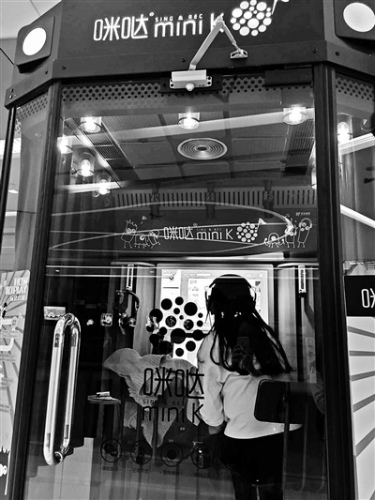 北青报记者来到朝阳区常营长楹商业街,商区四楼一餐厅旁摆放着两台标有“咪哒miniK”字样的“玻璃房”,里面的人正在唱歌,一位中年女士带着一个十多岁的小姑娘在外排队等候,过往行人也不时投来匆匆一瞥。十多分钟后,唱歌的人仍未出来,小姑娘在中年女士的劝说下离开了。北青报记者询问旁边餐厅的工作人员是否经常有人排队等候唱歌。该名工作人员表示,偶尔有人排队,但并不多,“里面的人一直不出来,外面的人等得不耐烦就走了。”