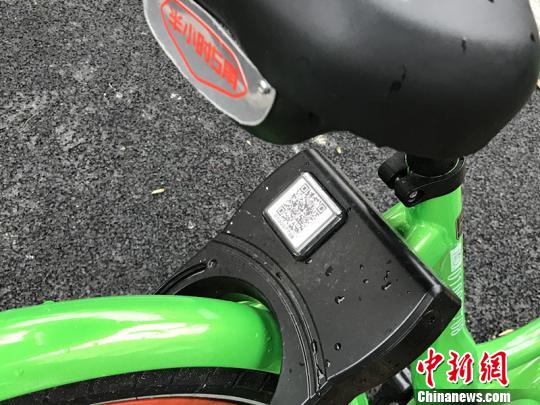 图为单车车锁上的二维码。 杨颜慈 摄