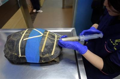 近日,位于城西的一家宠物医院接收了一位病重的患者——一只年龄在10岁左右的庙龟。此前,其主人张文(化名)曾想法自己救治,但始终不见效果,乌龟精神反而愈加萎靡,春节后才不得不将其送往宠物医院救治。