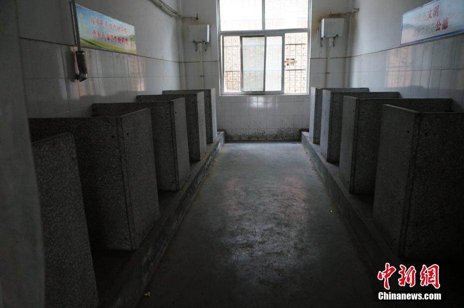 记者当天下午三点到达事发学校,了解到事故原因是:该校当天举行全校月考,学生在早上8点半考试前大量集中上厕所,在从二楼下到一楼时有学生跌倒,发生踩踏。图为学校厕所内部。 韩章云 摄