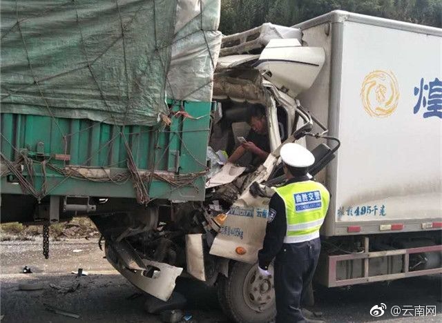 等待救援的过程中,石某某双脚卡在驾驶室不能动弹,他面无惧色,依然淡定的刷起手机来,最终由曲胜大队民警和当地消防人员通过破拆驾驶室的方式将石某某救出,由医院人员送至医院救治,目前伤势平稳。