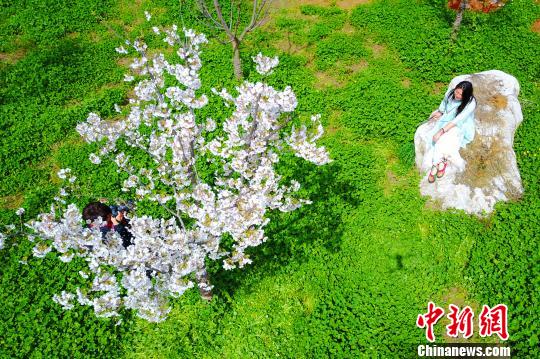 扬州“樱花大道”逾千株樱花竞相绽放 烂漫景色醉游人
