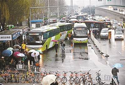 近日,朝阳区大望路华贸桥附近的八王坟东公交车站遭遇“围城”,由于华贸桥附近是通往通州、燕郊等地公交车的站点,又紧邻国贸,大量人员骑自行车到此候车,导致自行车数量猛增。近千量停放在这里的共享单车占据了进出站车道,给进出站的公交车带来了不便和隐患。《北京青年报》报道此事后,相关部门和运营商对此处堆积的共享单车进行了清理。