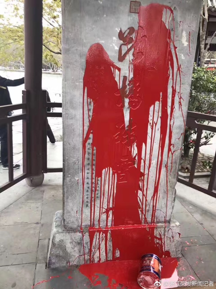 西湖边断桥残雪碑被人泼红漆 涉事者被抓