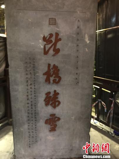 中新网杭州3月29日电 (记者 方堃)“通过浙江大学文物保护材料研究实验室专家团队连夜修复,昨天被泼红漆的‘断桥残雪’石碑目前已经恢复原貌,重新和游客见面。”29日,浙江杭州西湖风景名胜区管理委员会岳庙管理处办公室主任龚稷萍告诉记者。