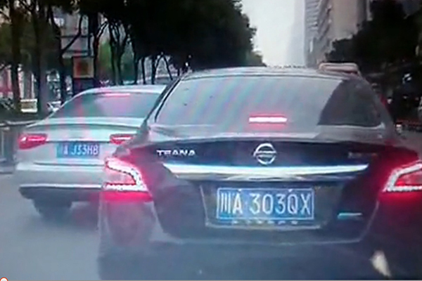 为避免发生碰撞,尽管不情愿但天籁司机似乎还是做出了让步