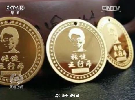 这就是五行币,据说纯金制造。一面是头像,刻着张健五行币字样,下面有一组数字编号,另一面是些装饰图案,看起来并没有什么神奇之处。怎么就能够5000元买上一枚,一年就能达到400万元呢?参与者们说,这五行币可了不得,因为在这背后连带着的是数字货币。