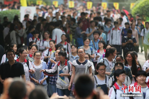 资料图:2016年6月9日下午,大批考生从南京一处高考考点内轻松走出。中新社记者 泱波 摄