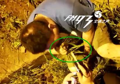 这样哭笑不得的一幕,17日晚11点左右,在义乌市环城南路国贸大道新屋村路段上演。