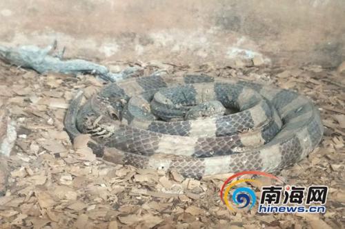 海口金牛岭公园内动物园内已经死亡很久的金环蛇。南海网记者 姜飞 摄