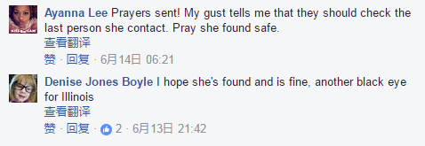 美国网友Denise Jones Boyle表示,希望她能被找到而且一切都好。