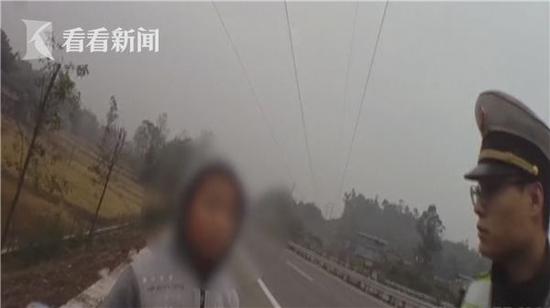 执法人员发现男孩后,立即靠边停车,指挥行驶车辆减速通过,将男孩带到了安全地带。