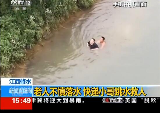 19日,江西修水一77岁的老人不慎落水,情况危急。两名学生发现后大声呼救,恰巧从桥上路过的快递小伙胡金根听到后,从近5米高的河堤护栏上跳下去冲到河里救人。目前老人已无大碍。"看到一个奶奶在水里,救人第一…"为见义勇为点赞!