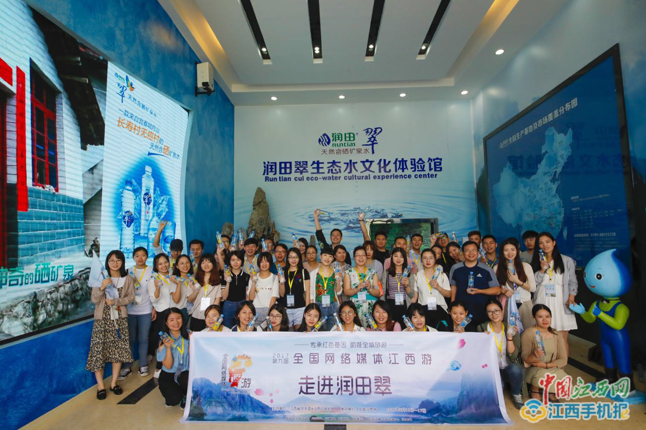 中国江西网移动采编讯 记者李志强报道:明月山下温汤泉水,因富硒温泉而声名鹊起,每年都吸引大量游客前来。6月14日,来自全国近80家主流网络媒体组成的“2017第九届全国网络媒体江西游”采风团,来到润田翠水源地温汤镇,探访远近闻名的温汤温泉古井,以及润田翠生态水文化体验馆。