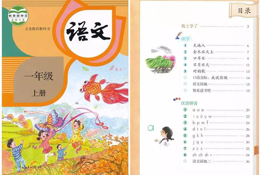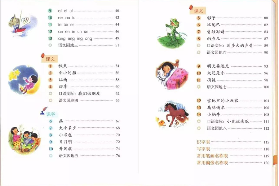 今年新入学的小学生拿到语文课本后,打开书,是这样的: