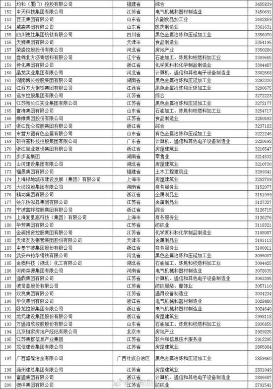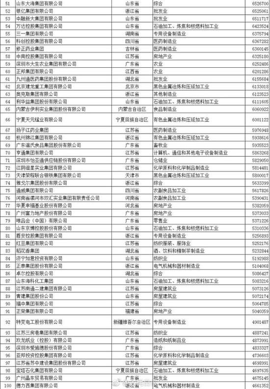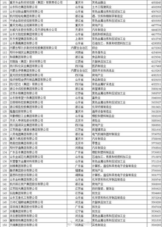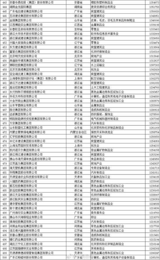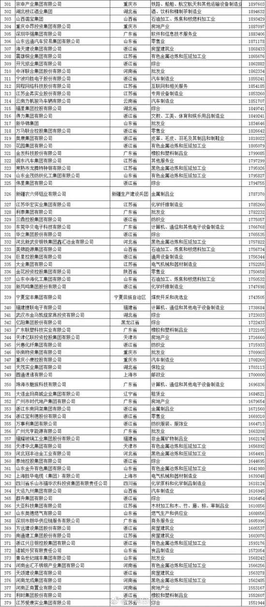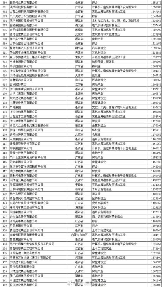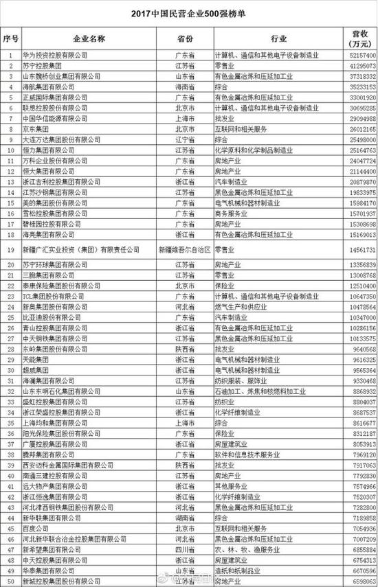 以下为2017中国民营企业500强榜单(来自人民日报微博):