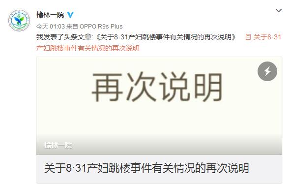 《关于8·31产妇跳楼事件有关情况的再次说明》全文如下: