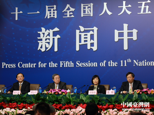 十一届全国人大五次会议在梅地亚中心举行记者会,中国人民银行副行长胡晓炼出席记者会并就两岸货币清算等问题回答记者提问。(中国台湾网 王伟 摄)